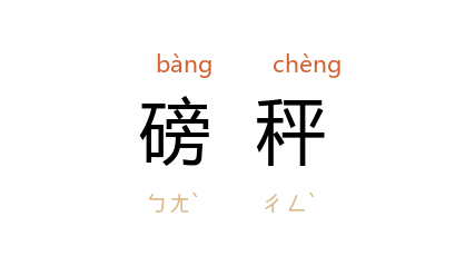 ⒈ 以金属做成,底座上有承重的金属板,用来衡量物体轻重的器具,因英美衡器以磅为单位,故称为「磅秤」。后多通称为「秤子」。