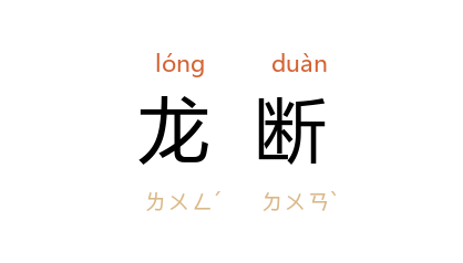 引《孟子·公孙丑下》:“人亦孰不欲富贵?而独於富贵之中有私龙断焉……有贱丈夫焉,必求龙断而登之,以左右望,而罔市利。”赵岐 注:“龙断,谓堁断而高者也;左右占视,望见市中有利,罔罗而取之。”清 夏燮 《中西纪事·通番之始》:“大西洋 人,后至而思龙断焉。”清 黄遵宪 《番客篇》:“龙断兼贋鼎,巧夺等劫掠。”