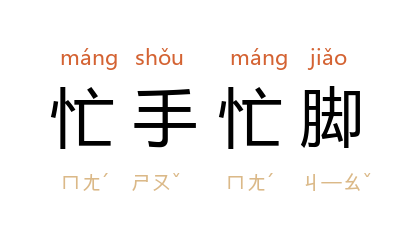 引《红楼梦》第八十回:“薛姨妈 先忙手忙脚的, 薛蟠 自然更乱起来。”