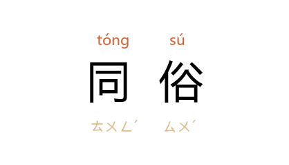 引宋 王安石 《答司马谏议书》:“人习於苟且非一日,士大夫多以不恤国事,同俗自媚於众为善。”宋 戴复古 《哭涧泉韩仲止》诗之一:“雅志不同俗,休官二十年。”