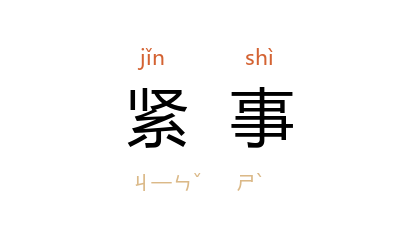 引《三国演义》第二一回:“许褚、张辽 引数千人入园中曰:‘丞相有命,请使君便行。’ 玄德 惊问曰:‘有甚紧事?’”清 黄六鸿 《福惠全书·莅任·清号件》:“遇有机密紧事,另差马快,星驰回缴。”