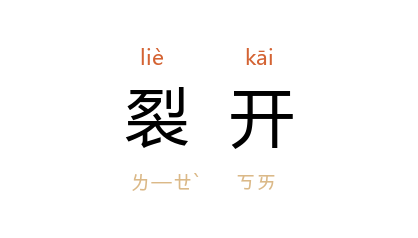 引杨朔 《征尘》:“他为自己的高明的诙谐而裂开肥厚的嘴唇,他是在替自己喝彩。”许杰 《大白纸》十二:“一颗流星在西方闪过,正如天门裂开,透出白日一般的光线。”