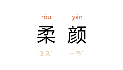 引唐 皎然 《妙喜寺达公禅斋寄李司直公孙房都曹德裕从事方舟颜武康士骋四十二韵》:“天上生白榆,葳蕤信好折。实可反柔颜,花堪养玄髮。”唐 元稹 《青云驿》诗:“大帝直南北,羣仙侍东西……众真千万辈,柔颜尽如荑。”