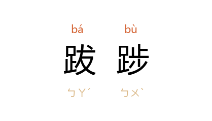 引明 冯梦龙 《女丈夫·洪客高遁》:“从别后,兵火催,孤身怀宝为盗煤,跋踄到 关西,蒙郡主多优礼。”柳亚子 《五月八日谒廖夫人于观音山旅邸》诗:“卌年渴想 张别山,长途跋踄寧嫌久。”徐兴业 《金瓯缺》第一部第二章:“只怕参议年来体衰多病,不胜跋踄之劳。”