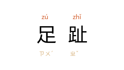 引晋 左思 《吴都赋》:“暨其幽遐独邃,廖廓闲奥,耳目之所不该,足趾之所不蹈。”清 吴敏树 《游大云山记》:“明晨下山,下行易,惟不可望,恐欲坠,亦顿撼苦足趾痛。”周作人 《知堂回想录》六二:“在 日本 居住期间,那足趾分作两枝的 日本 布袜真是方便。”