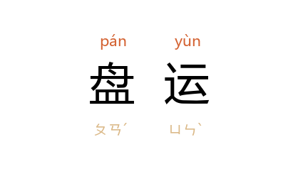 引清 林则徐 《会奏夷人趸船尽数呈交烟土折》:“惟为数甚多,一躉船所载之箱,即须数十隻驳船,始敷盘运。”《二十年目睹之怪现状》第一〇七回:“细细察看,那棺木却是不及一寸厚的薄板。我不禁道:‘照这样,怎么盘运呢?’弓兵道:‘如果要盘运,是要加外槨的了。’”