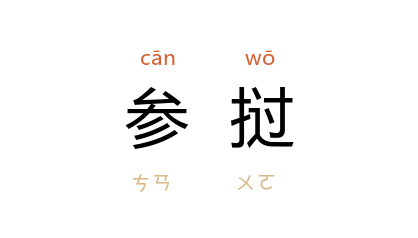 ⒈ 击鼓之法。亦指以此法击鼓。参,通“掺”。