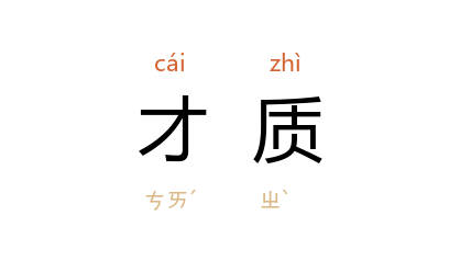 引《晋书·贾充传》:“俄而侍宴,论太子婚姻事, 勖 因言 充 女才质令淑,宜配储宫。”《朱子语类》卷七十:“龟山 才质困弱,好説一般不振底话。”明 王廷相 《答孟望之论慎言》:“大抵人生才质,中下者多,故学道造诣,上达者少。”郭沫若 《断肠集·屈原研究》:“他有锐敏的感受性,接受了时代潮流的影响,更加上他的超绝的才质和真挚的努力,他的文学革命真真是得到了压倒的胜利。”