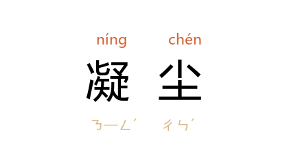 引《晋书·简文帝纪》:“帝少有风仪,善容止,留心典籍,不以居处为意,凝尘满席,湛如也。”宋 周密 《齐东野语·经验方》:“熊胆善辟尘,试之之法:以浄水一器,尘羃其上,投胆粟许,则凝尘豁然而开。”清 纳兰性德 《生查子》词:“散帙坐凝尘,吹气幽兰并。”