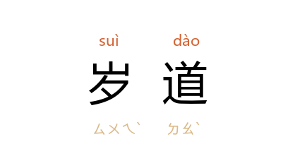 引北魏 贾思勰 《齐民要术·种穀》:“二月上旬及麻菩杨生种者为上时,三月上旬及清明节桃始花为中时,四月上旬及枣叶生,桑花落为下时。岁道宜晚者,五月六月初亦得。”《资治通鉴·后周世宗显德二年》:“上临其丧,近臣奏称岁道非便,上曰:‘君臣义重,何日时之有?’”