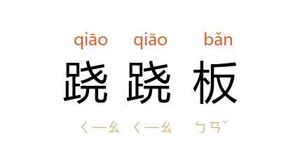 ⒈ 儿童游戏用具。在狭长而厚的木板中间装上轴,然后架在支柱上,两人对坐两端,轮流用脚蹬地,使一端跷起,另一端下落,如此反复,游戏以取乐。