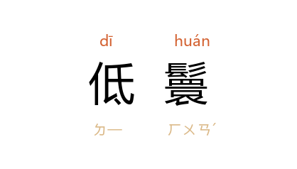⒈ 鬟,古代妇女头上的发髻。低鬟形容女子羞涩的样子。