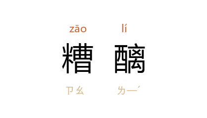 引宋 司马光 《酬永乐刘秘校庚四洞诗》:“又非 郑 伯有,壑谷甘糟醨。”明 张居正 《七贤咏》序:“今之论七贤者,徒观其沉酣恣放,哺啜糟醨,便谓有累名教,胎祸 晋 室。”清 曹寅 《穀日西轩燕集》诗:“但嗜糟醨属吾党,未妨灭烛絶冠缨。”