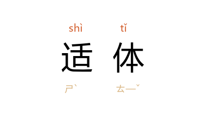 引《周书·柳虯传》:“衣不过适体,食不过充饥。”唐 欧阳詹 《二公亭记》:“古者,创栋宇纔御风雨,从时适体,未尽其要。”明 史槃 《梦磊记·淑女闹园》:“恣口足珍羞,适体多文绣。”
