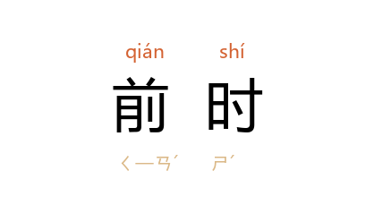 引《史记·项羽本纪》:“曰:‘前时某丧使公主某事,不能办,以此不任用公。’众乃皆伏。”唐 韩愈 《柳子厚墓志铭》:“子厚 前时少年,勇於为人,不自贵重顾藉,谓功业可立就,故坐废退。”宋 晏几道 《踏莎行》词:“雪尽寒轻,月斜烟重,清懽犹计前时共。”潘漠华 《雨点》:“站在门口探头向房内一看,前时那个伙计迎身出来。”