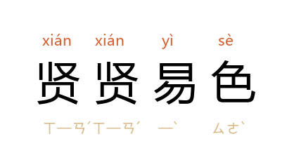 引《论语·学而》:「子夏曰:『贤贤易色。』」