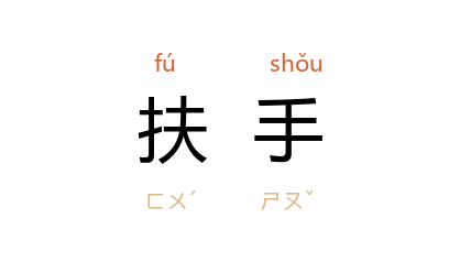引清 李渔 《意中缘·画遇》:“董老爷、陈相公 到了,快打扶手。[净、丑打扶手。生、小生上船介。]”