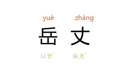 ⒈ 亦作“岳丈”。岳父。按,今字多用“岳”,不用“岳”。