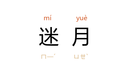 李劼人 《天魔舞》第二三章:“结婚之后,男的和女的毕竟不免有一段昏沉沉的时间,这在西洋叫做蜜月,在 中国 则叫作迷月。”