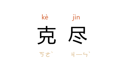 引《太平天囯文书汇编·天历每四十年一斡旋诏》:“共抒铭刻代赎之念,克尽感功感德之心。”郭沫若 《洪波曲》第十三章五:“在他们自己的心理上,与其说为了帮忙我们,倒无宁是克尽他们的天职。”赖和 《一杆“秤仔”》:“她心里的欣慰,使她责任心亦渐放下,因为做母亲的义务,已经克尽了。”