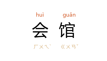 ⒈ 旧时同省、同府、同县或同业的人在京城、省城或国内外大商埠设立的机构,主要以馆址的房屋供同乡、同业聚会或寄寓。