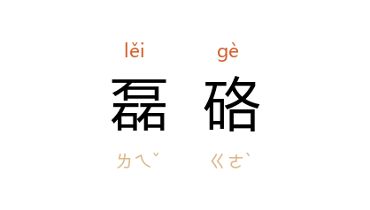 引《山海经·西山经》“上申之山,上无草木,而多硌石” 晋 郭璞 注:“硌,磊硌,大石貌也。”《文选·嵇康<琴赋>》:“参发并趣,上下累应,踸踔磥硌,美声将兴。”李善 注:“磥硌,壮大貌。磥与磊同。”宋 毛滂 《清平乐·太师相公生辰》词之三:“流肪磊硌龟蛇,会留红日西斜。欲助我公寿骨,蟠桃等见开花。”