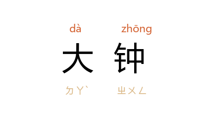 引《国语·周语下》:“又铸大钟。”《墨子·非乐上》:“是故 子墨子 之所以非乐者,非以大钟、鸣鼓、琴、瑟、竽、笙之声,以为不乐也。”《尔雅·释乐》:“大钟谓之鏞。”邢昺 疏引 李巡 曰:“大钟,音声大。鏞,大也。”