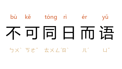 ⒈ 差别很大,不能相提并论。宋·胡仔也作「不可同年而语」、「未可同日而语」。
