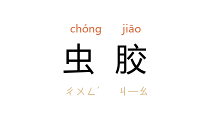 ⒈ 昆虫分泌的胶汁所凝成的物质,用做工业原料。