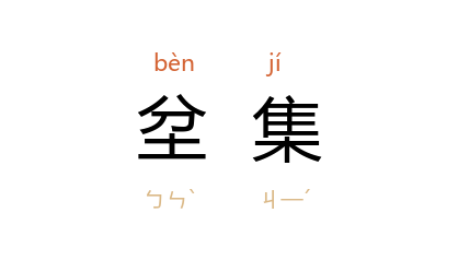 引唐 刘禹锡 《山南西道新修驿路记》:“令既下,奋行之徒坌集。”金 元好问 《续夷坚志·胡公去狐》:“夜半,狐鸣后圃中,一倡百和,少顷坌集。”明 宋濂 《佛智弘辨师杰峰愚公石塔碑铭》:“緇素之士,坌集座下。”清 袁枚 《随园诗话》卷十一:“洛阳 纸贵,索诗稿者坌集,几不可当。”