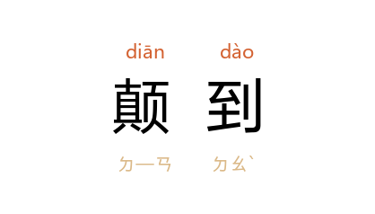 引汉 扬雄 《太玄·上》:“升堂颠倒,失大众也。”晋 葛洪 《抱朴子·审举》:“刀尺颠到者,则恐人之议己也;达不由道者,则患言论之不美也。”前蜀 韦庄 《江上村居》诗:“颠到梦魂愁里得,撅奇诗句望中生。”