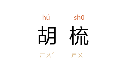 引《儿女英雄传》第二四回:“﹝ 邓九公 ﹞胸前还掛着一盘金綫菩提的念珠儿,又一个汉玉圈儿拴着个三寸来长的玳瑁鬍梳儿。”老舍 《茶馆》第一幕:“老人进来,拿着些牙签、胡梳、耳挖勺之类的小东西,低着头慢慢地挨着茶座儿走,没人买他的东西。”
