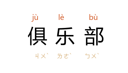 ⒈ 为达到某些特殊目的,如社交、休闲活动和娱乐等,而组织的社会团体及其使用场所。由英语club翻译得名。会员的资格限制各异,并需定期缴交费用。如联勤俱乐部。