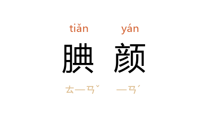引南朝 梁 沉约 《奏弹王源》:“明目腆颜,曾无愧畏。”《明史·艾穆传》:“居正 今以例留,腆颜就列矣。”清 蒲松龄 《聊斋志异·聂小倩》:“被妖物威胁,歷役贱务;腆颜向人,实非所乐。”郭沫若 《屈原研究》:“不像后世有好些文人一遇着威逼便腆颜事仇而歌功颂德。”