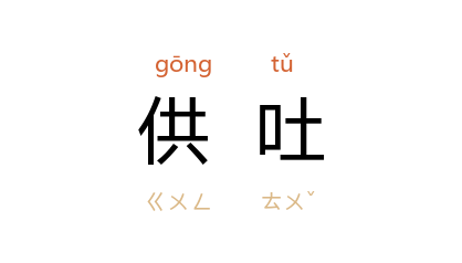 引《宣和遗事》前集:“王平 ……付吏 张大年 勘问因由, 花约 依实供吐。”《天雨花》第八回:“须当据实来供吐,若有虚言即动刑。”清 黄六鸿 《福惠全书·刑名·审盗》:“须要听其口词,辨其虚实,俟其供吐,以为驳詰。”