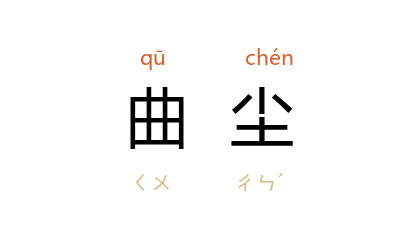 ⒈ 亦作“麯尘”。 酒曲上所生菌。因色淡黄如尘,亦用以指淡黄色。