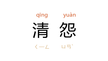 引南朝 梁 锺嵘 《诗品》卷中:“详其文体,察其餘论,固知宪章 鲍明远 也。所以不闲於经纶,而长于清怨。”唐 钱起 《归雁诗》:“二十五絃弹夜月,不胜清怨却飞来。”清 纳兰性德 《虞美人》词之二:“凄凉别后两应同,最是不胜清怨月明中。”丁玲 《杜晚香》:“她只是对自己的无能,悄悄地怀着一种清怨。”