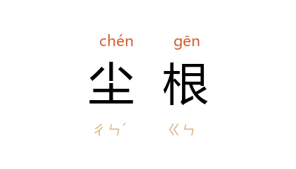 引南朝 梁 萧统 《开善寺法会》诗:“尘根久未洗,希霑垂露光。”唐 王维 《为人祭李舍人文》:“旷无浄染,顿离尘根。”宁调元 《燕京杂诗》之六:“不浄尘根多懊恼,转移恩怨太分明。”