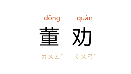 引清 曾国藩 《箴言书院记》:“要使学者自幼而端所习,随其材之大小,董劝渐摩,徐底于成而已。”郑观应 《盛世危言·农功》:“招徠垦闢,董劝经营,定何章程,作何布置,决不得假手胥役,生事扰民。”