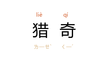 例如:「这个艺术家好猎奇,喜欢搜购各地的民俗古董。」
