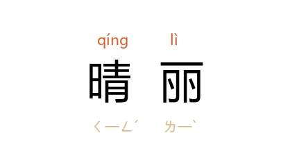 引宋 周必大 《次韵沉世得抚干川泳轩》:“江山倏晴丽,云月助色泽。”明 徐弘祖 《徐霞客游记·粤西游日记三》:“自发足来已五日,虽行路迂曲,去 养利 止数里,所閲山川特奇,且兼辰晴丽,即春秋不及也。”