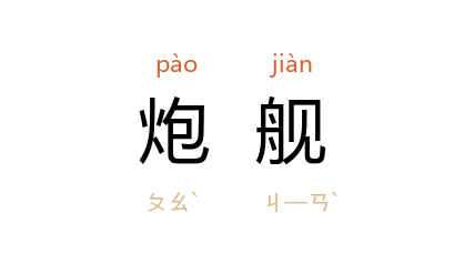 ⒈ 以火炮为主要装备的轻型军舰。主要用来保护沿海地区和近海交通线,轰击敌人海岸目标,掩护部队登陆等。