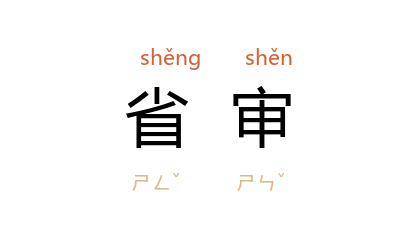引《资治通鉴·唐太宗贞观三年》:“故事:凡军国大事,则中书舍人各执所见,杂署其名,谓之五花判事。中书侍郎、中书令省审之,给事中、黄门侍郎駮正之。”《新唐书·卢钧传》:“迁给事中,有大詔令,必反覆省审,驳奏无私。”宋 庄季裕 《鸡肋编》卷中:“自 熙寧 中分三省职事,故命令所出,必自中书……门下但掌省审封駮,尚书奉行而已。”