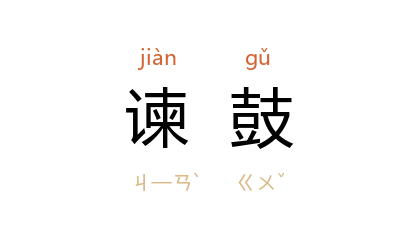 引《管子·桓公问》:“舜 有告善之旌,而主不蔽也; 禹 立諫鼓於朝,而备讯唉。”《新唐书·裴谞传》:“諝 上疏曰:‘諫鼓、谤木之设,所以达幽枉,延直言。’”唐 唐孙华 《吴歈为陈沧洲太守作》诗:“谁能鸣諫鼓,慷慨伏青蒲。”