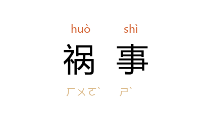 引《三国演义·第一一回》:「正商议间,忽流星马飞报祸事。」《儒林外史·第一七回》:「潘保正迎著道:『不好了!祸事到了!』」
