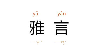 ⒈ 雅正之言。古时指通语,同方言对称。与“夏”通,“夏”为中国人之称,故“雅言”即中国人之言。’”