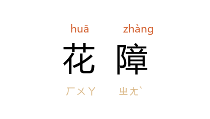 引五代 王仁裕 《开元天宝遗事·隔障歌》:“王笑谓左右曰:‘设七宝花障,召 宠姐 於障后歌之。’”唐 白居易 《春老》诗:“歌舞屏风花障上,几时曾画白头人。”