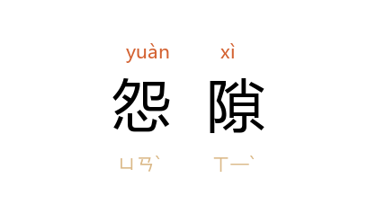 引《后汉书·党锢传序》:“自此诸为怨隙者,因相陷害,睚眦之忿,滥入狱中。”《旧五代史·晋书·郑韬光传》:“平生交友无怨隙,亲族之间无爱憎,恬和自如,性尚平简。”清 陈确 《洛蜀论》:“夫事理则有曲直,怨隙则有大小,兵端则有先后,昭然在人耳目,不可掩也。”师陀 《寒食节》一:“痣脸老叔 同那 关七 有点小怨隙。”