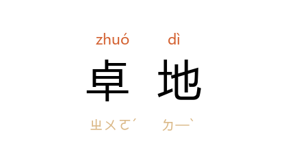 引唐 张祜 《答僧赠柱杖》诗:“画空疑未决,卓地计初成。”清 黄景仁 《华不注》诗:“卓地青莲忽千仞,虎牙森立羊肠紆。”