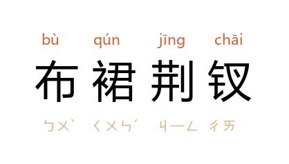 ⒈ 粗布做的裙,荆条做的钗。旧时形容贫家女子服饰俭朴。